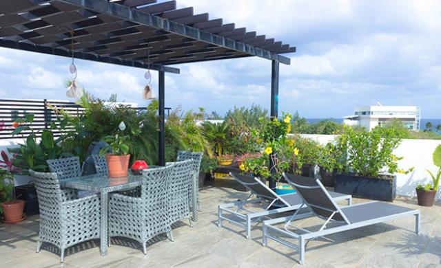 This condo has many great features, such as the stunning panoramic ocean view from the huge rooftop, which is also the perfect place to entertain with its bar, bbq and dining area, plus a private Jacuzzi, all these surrounded by greenery and outdoors furnishings. Every space in this condo is nicely decorated, and the setting is perfect to live surrounded by nature.